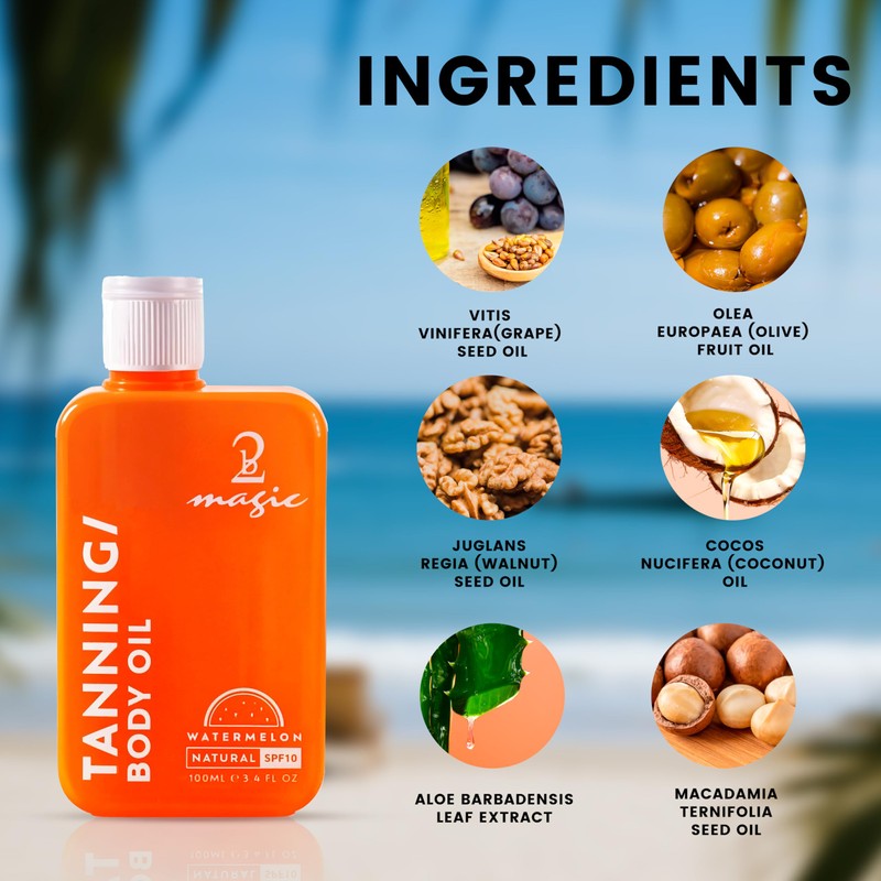 2Bmagic Tanning Oil - Moisturizing Hydrating Tanning Fast, Dark Sun Tan for Outdoor Sun & Tanning Beds(watermelon)