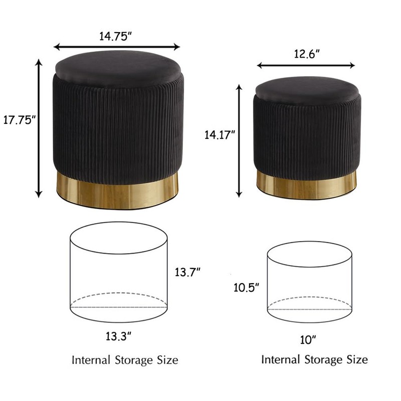 - COMPACT SIZE:The Ottoman Set of 2 have 2 size 15"L x 15"W x 17"H (big) 11.4"L x 11.4"W x 12.5"H (small) The nest packing very suitable for space saving when not in use