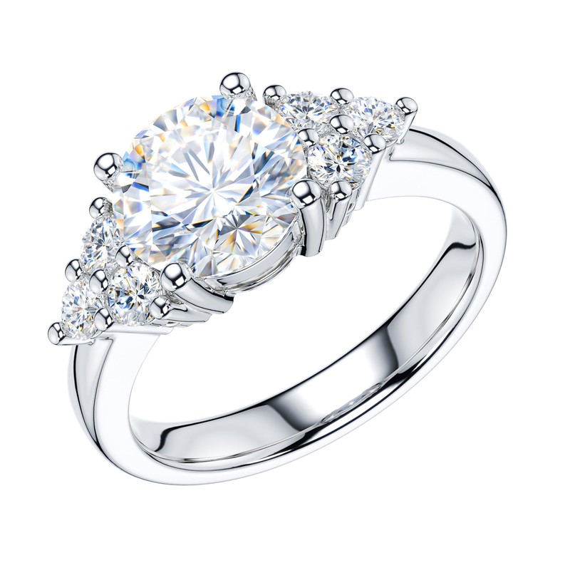 2CT Genuine Moissanite Sterling Silver Three Stone Style Cluster Promise Engagement Ring For Women (O)