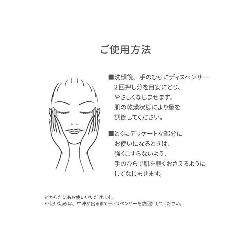 After washing your face or bathing, take an appropriate amount on your palm and gently blend with your face and body. When used in most delicate areas, gently massage and blend the skin in your palm to avoid rubbing against the skin.