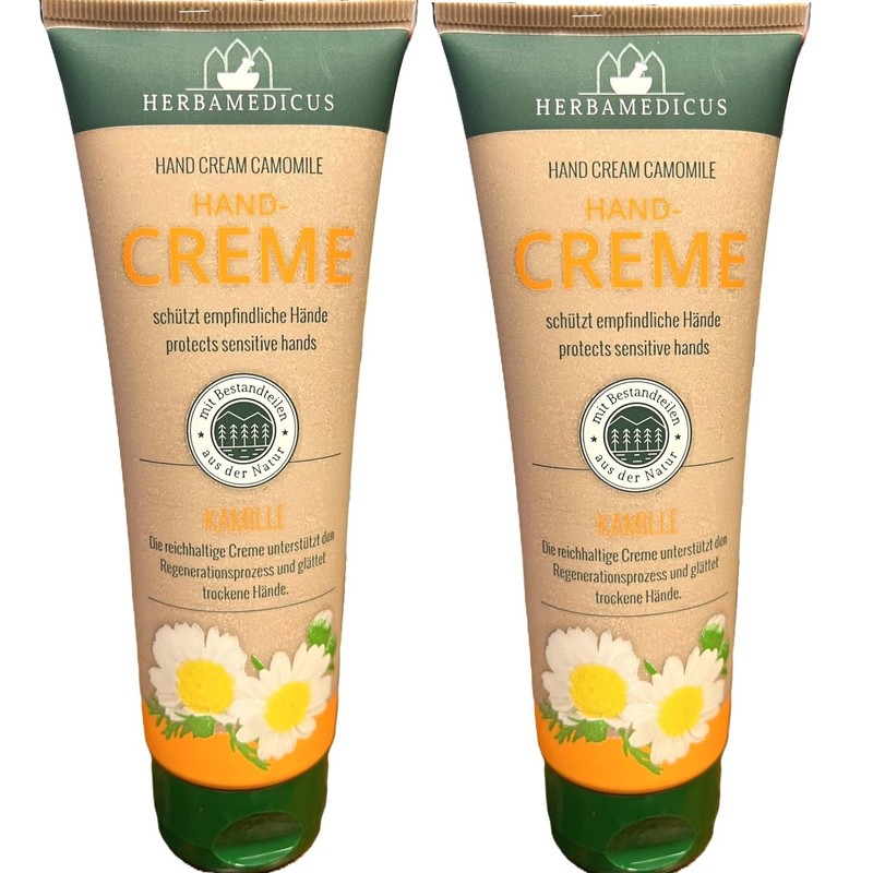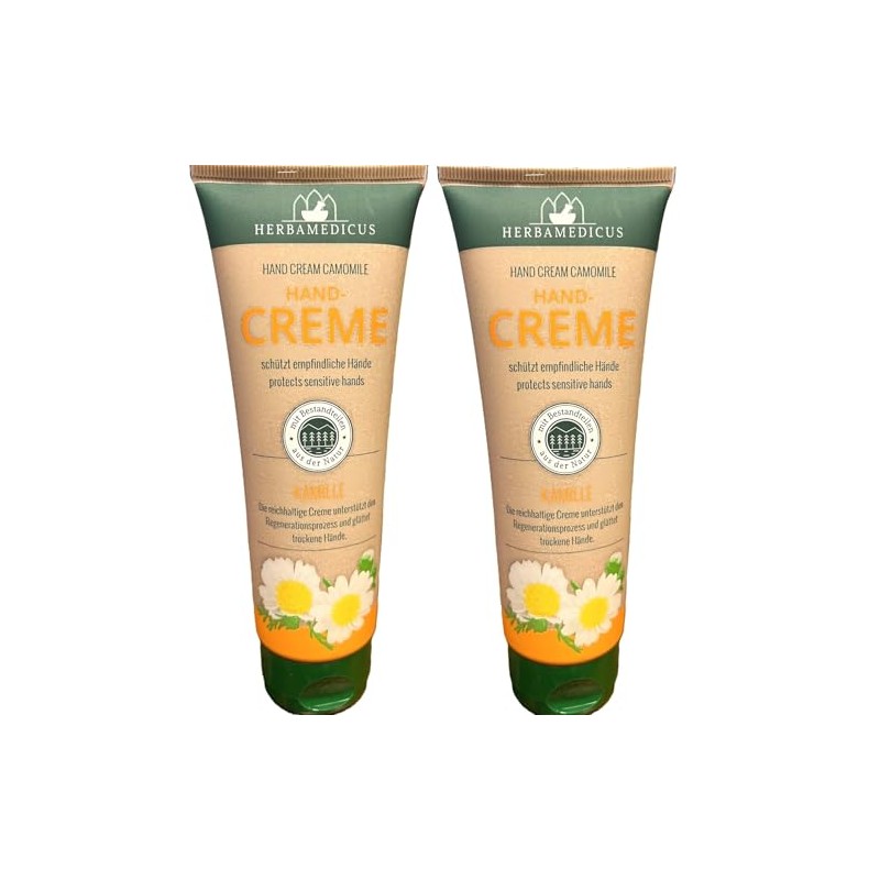 - Herbamedicus Handcreme Kamille für empfindliche und beanspruchte Hände feuchtigkeitsspendend und schützende Eigenschaften des Glycerin unterstützen de Regenerationsprozess und glätten trockene und rissige Hände