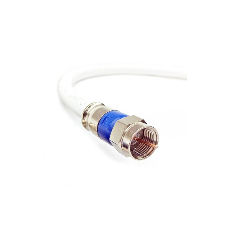 White RG-6 75 Ohm Quad Shield Coax Cable for (CATV, Satellite TV, & Broadband/High Speed Internet) is made with UL rated Quadshielded cable and compression connectors. This white, quad shield RG-6 broadband coax cable has a copper clad steel center conductor, a UV resistant PVC jacket and is swept tested 5MHz-3GHz. It is tested to SCTS Standards, UL approved and ISO factory standard These cables are for indoor and outdoor use and can be used with either your CATV Cable or Satellite System. They can also be used for your Broadband Internet or High Speed Internet Router. You can choose lengths between one and two hundred feet long.