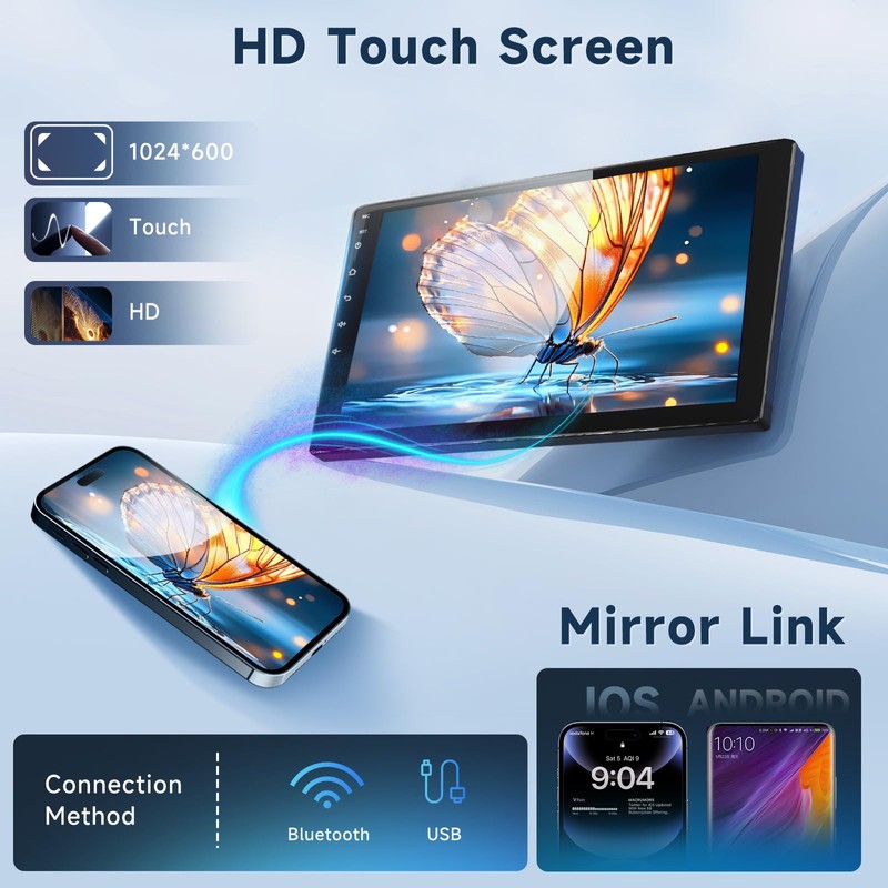 • Mirror Link / Split-Screen: The touchscreen car radio supports Mirror Link for both iOS and Android devices, you can synic your phone to the radio wirelessly. This feature allows you to display two pages simultaneously, such as navigation and music, ensuring you never miss a beat or a turn