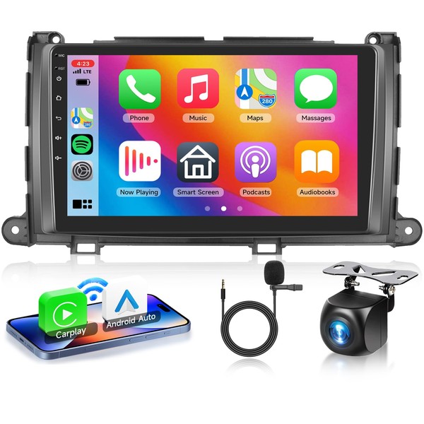 2G+64G Android 13 Car Stereo for Toyota Sienna 2011-2014 with Wireless Carplay Android Auto, 9 Inch Touch Screen Radio Support GPS/WiFi/Bluetooth/FM/SWC/Backup Camera