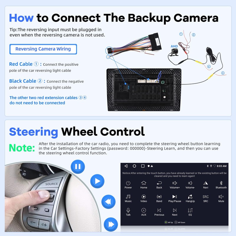 - 【Multi-Functions】EQ Audio / FM RDS Radio / GPS Navigation / Bluetooth (Phonebook support, hands-free calling) / Wi-Fi Hotspot Internet / Steering Wheel Control / Split Screen / Compatible with AHD Rear View Camera and MIC