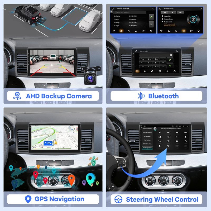 - 【Hi-Fi Audio, GPS Navigation, WiFi Hotspot】Hi-Fi audio makes the playback of the played songs highly similar to the original sound, which can perfectly reproduce the voice of your favorite singer. The Mitsubishi Lancer stereo has GPS navigation that allows you to use online/offline maps. Through WiFi/Hotspot connection, you can also download apps from play store, such as YouTube, Tiktok, Spotify, etc, which can enrich your car life.
