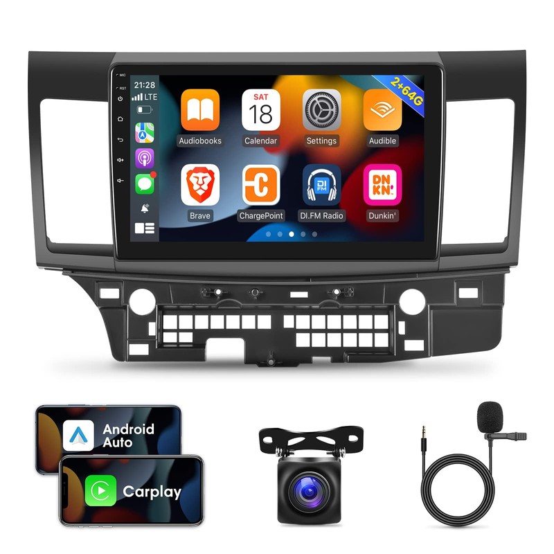 [2G+64G] Car Radio for Mitsubishi Lancer 2008-2017, 10.1 inch Android 13 Touch Screen Stereo, Carplay/Android Auto/Hi-Fi Audio/1080P/SWC/Bluetooth + AHD Backup Camera + MIC