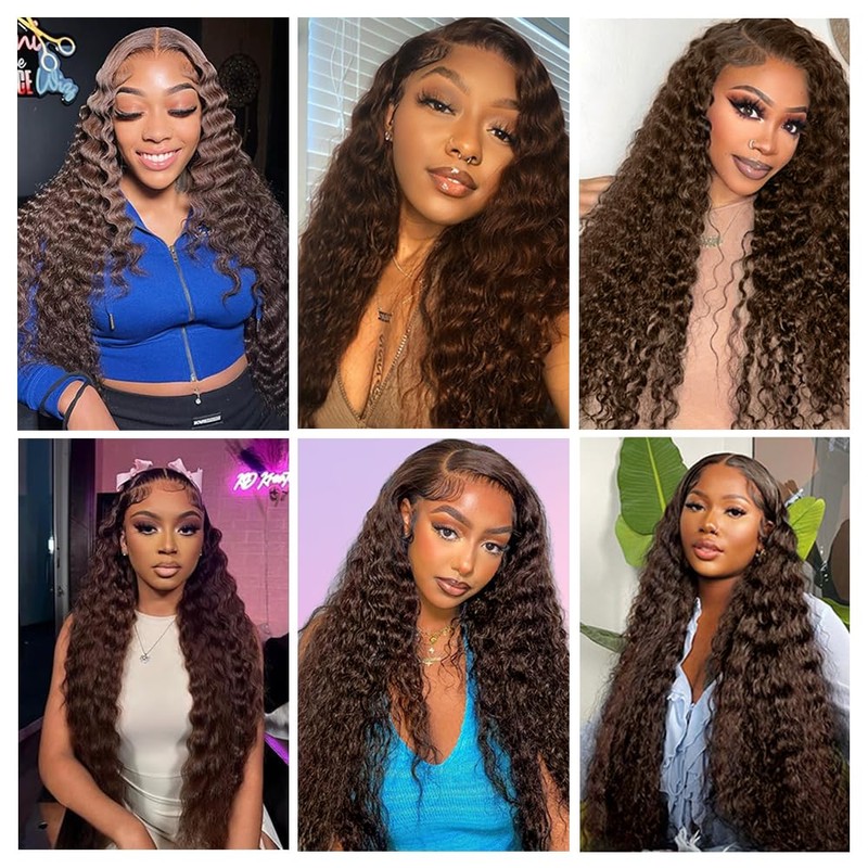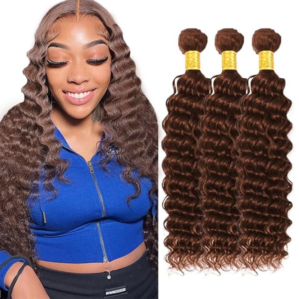 • 【💝Brown Deep Wave Bundles Color】: Color #4 Bundle,Chocolate Brown Deep Wave Human Hair Bundles.