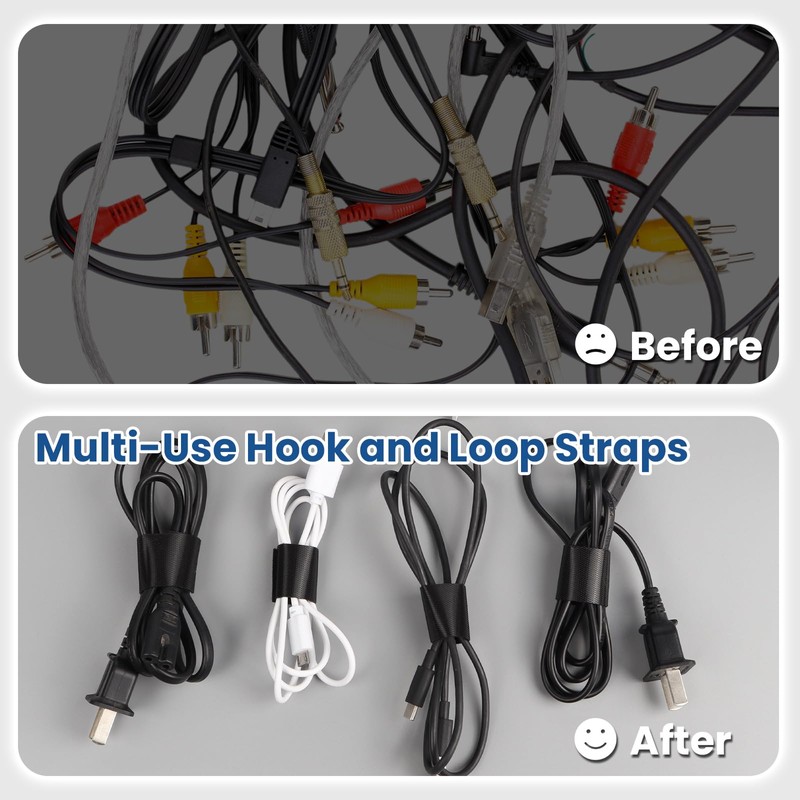 • Double-sided Structure: Compared to plastic cable ties, these nylon straps are more suitable for cable management. They maintain strong grip after repeated use, with the rough hook surface and soft loop surface fitting tightly, making them sturdy and durable.