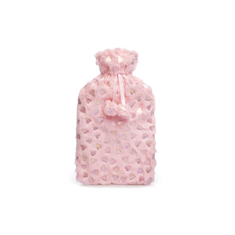 2LT Heart FOIL Print Plush HOT Water Bottle (Pink)