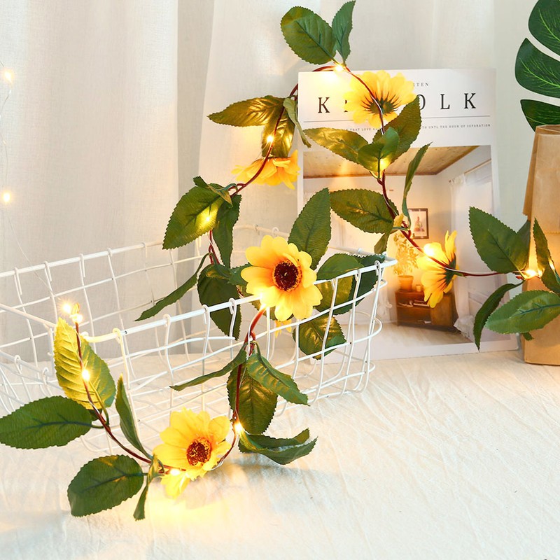 2M 30LED Plastic Simulation Sunflower Green Leaf Light String Home Decoration Lamp for Garden WeddingWarm White