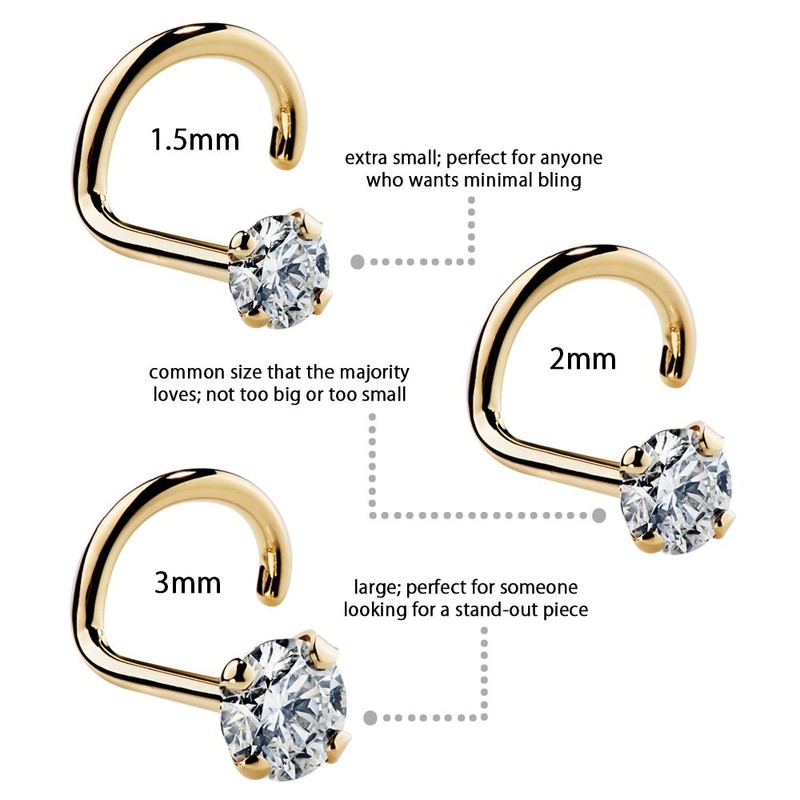 2mm Cubic Zirconia 14K Yellow Gold Nose Ring Twist Screw - 18G