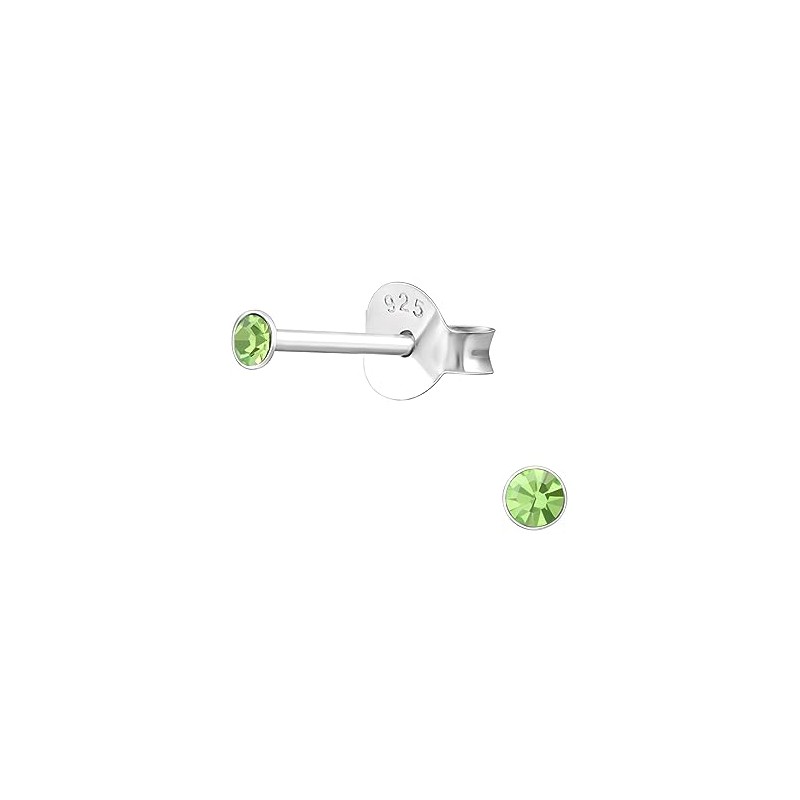 2mm Sterling Silver Peridot Green Crystal Round Tiny Stacking Stud Earrings -...