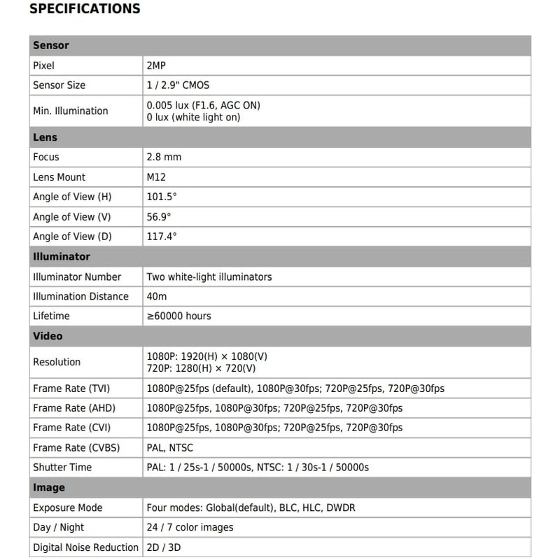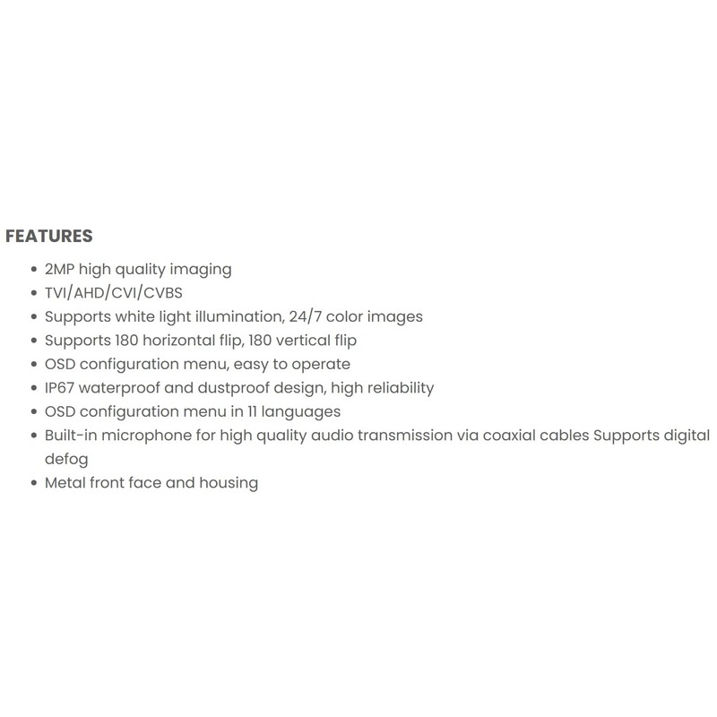 - ADVANCED FEATURES: Supports multiple exposure modes, digital noise reduction, digital defog, and 180° horizontal/vertical image flip capabilities