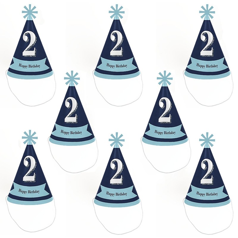 Big Dot of Happiness 2nd Birthday Boy - Two Much Fun - Cone Happy Second Birthday Party Hats for Kids and Adults - Set of 8 (Standard Size)