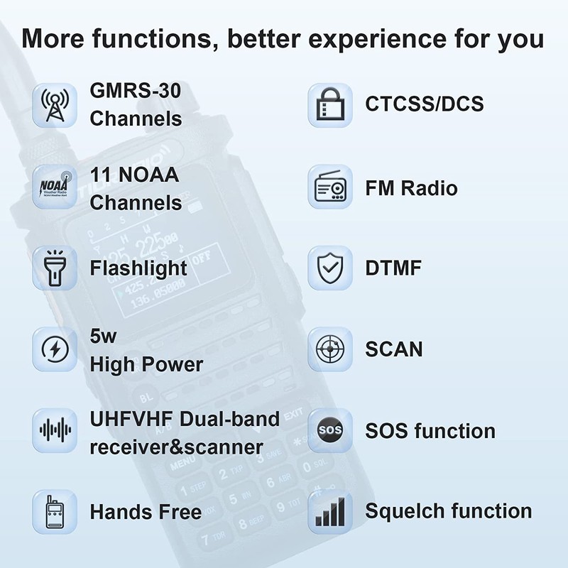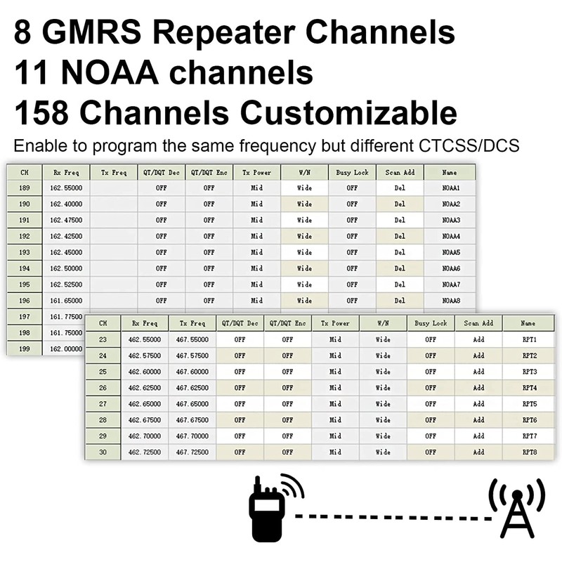 - 💎【Multifunctional Integrated】 - Wireless, App programmable, SYNC, FM Radio, NOAA Radio, Transmit Time-Out, Busy Channel Lockout, POC, 199 Channel Banks, Dual Watch, Adjustable Squelch, Scan, and More!