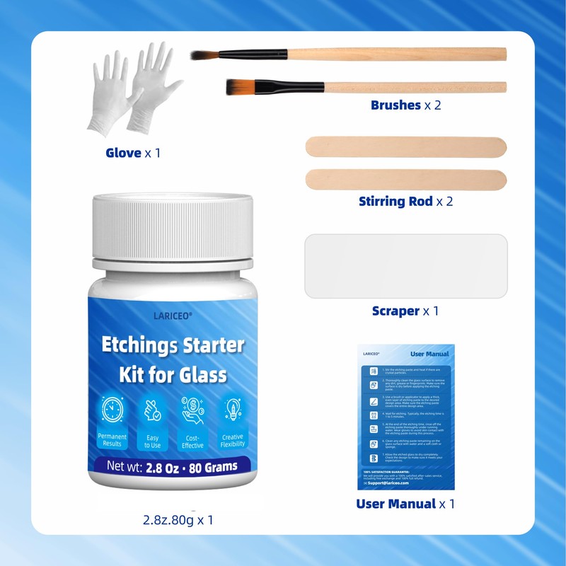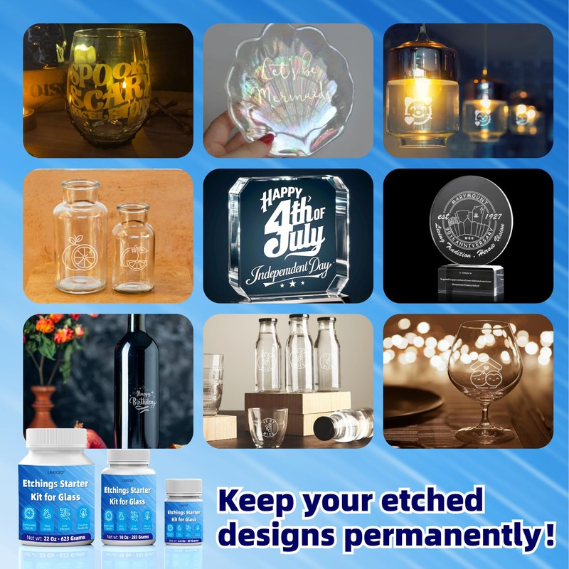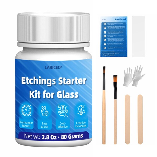 - PRECISION ETCHANT: Add a unique and decorative touch to any glass item. Easily create intricate and detailed designs with etching art glass cream! Our etching starter kit for glass allows you to create custom patterns and artwork on glass surfaces with precision and clarity.