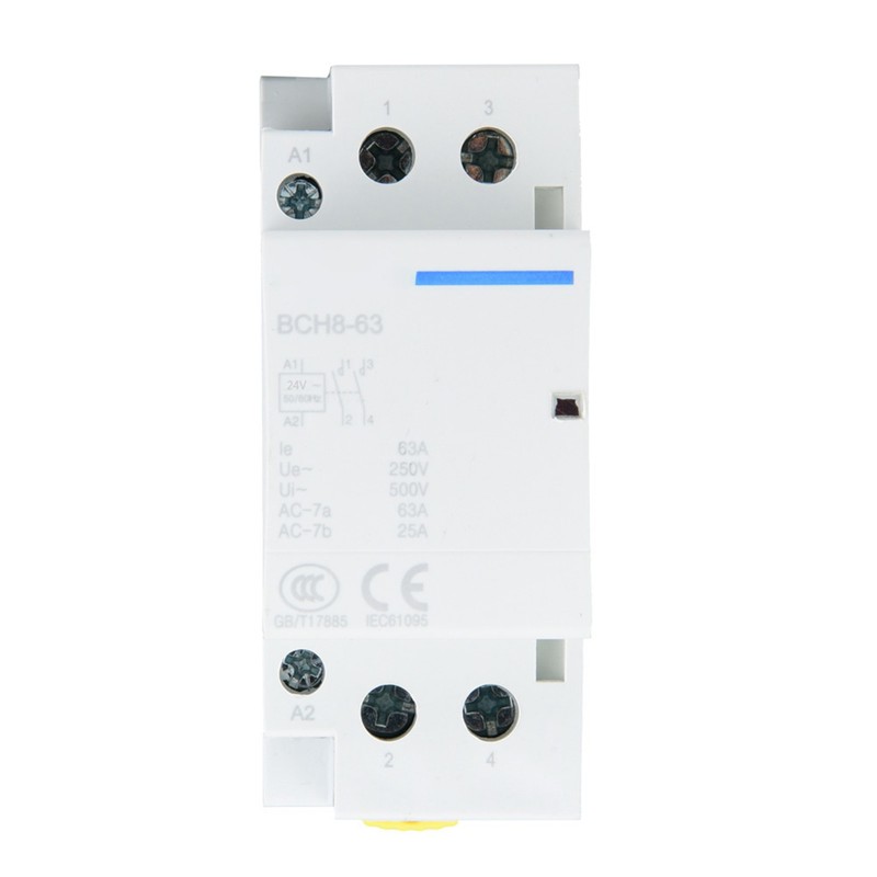 2P 63A Household AC Contactor DIN Rail Mount 1NO 1NC (24V)