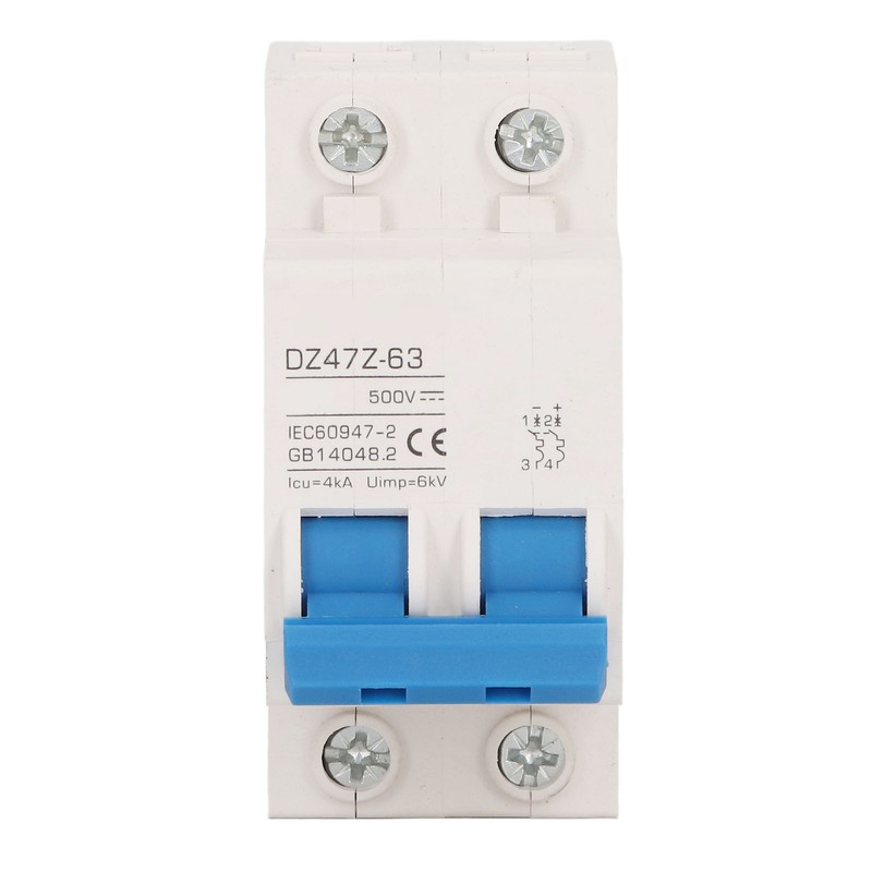 1、Function Description: Our 2P circuit breaker is applied to defend power distribution facilities from overload and short circuit damage, and also for control and isolation. DC500V rated voltage, and the Icu is 4kA and the Uimp is 6kV. 2、Fast Tripping: This circuit breaker's electromagnetic tripping system can be tripped immediately when the circuit is short circuited to ensure circuit safety. 3、System Arc Extinguishing: Usually DC arc extinguishing is more difficult than AC. However, our DC circuit breaker has a magnetic system to assist in arc extinguishing. 4、DIN Rail Installation: This miniature circuit breaker has a modular structure, screw clamp wire, and can be installed on 35mm(1.4in) DIN rail. 5、Wide Use Scenario: The 2P miniature circuit breaker is used for DC power systems, marine power systems, solar photovoltaic systems or other DC systems.