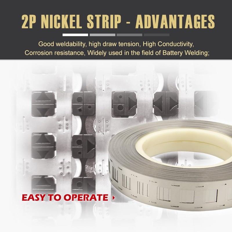 2P Nickel Strip 0.15x27mm (16.4ft/roll) Spacing 20.2mm for 18650 Soldering, Li-Po Battery, NiMh and NiCd Battery Pack Battery and Spot Welding 18650 Battery Pack DIY