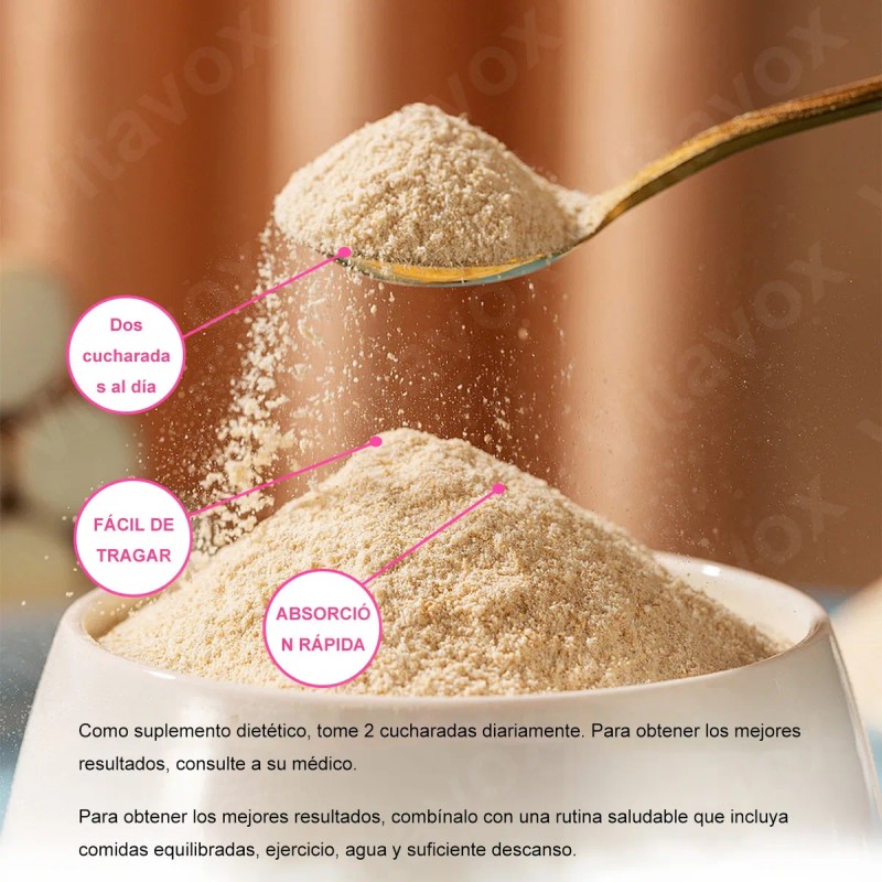 Este producto es un suplemento dietario y no debe considerarse un medicamento. Se recomienda seguir las indicaciones de dosificación proporcionadas en el empaque del producto. Generalmente, el polvo se disuelve en agua, jugo, batidos o se mezcla con alimentos. No suple dietas insuficientes. Es aconsejable consultar a un profesional de la salud antes de iniciar cualquier suplemento, especialmente si tienes alguna condición médica preexistente, estás embarazada, amamantando o tomando otros medicamentos.