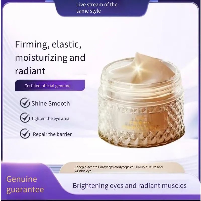 , Especificaciones del producto: 50 g Tipo de piel adecuado: neutro Número de certificado de registro no cosmético: Guangdong G Makeup Network Bei Zi 2024440049 Origen: China Cosméticos de uso especial: no Vida útil: 3 años Especificación: especificación normal Contenido neto: 50 g Ya sea for importar: no Marca: otros Eficacia cosmética: hidratante e hidratante Tipo de marca: marca nacional Número de licencia de producción: Yuezhuang 20230279 Público objetivo: mujeres Público objetivo: hombres Público objetivo: población general: Feto de oveja Crema de ojos antiarrugas Cordyceps Cell Luxury