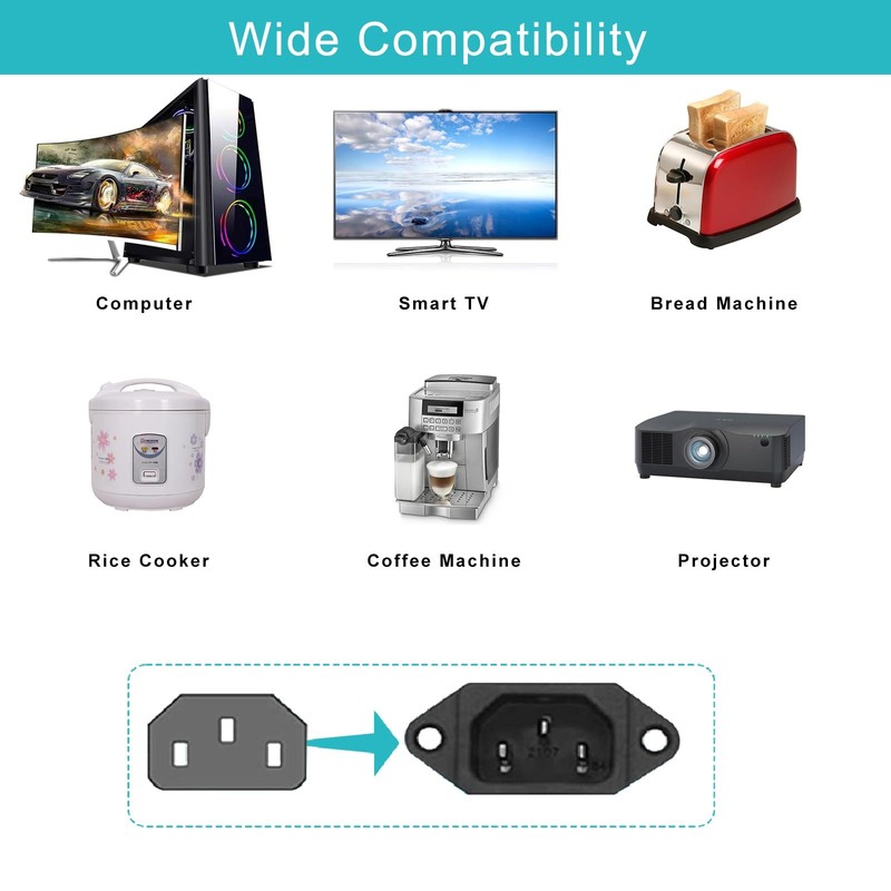 - 【REPLACEMENT FOR PC POWER CORD】 With a 3 prong plug and a C13 connector.IEC C13 connector works with most desktop computers, and most monitors, scanners, printers, speaker and that accepts a C13 connector. Ideal for use as a replacement to an old or missing power cord or simply as a handy backup.