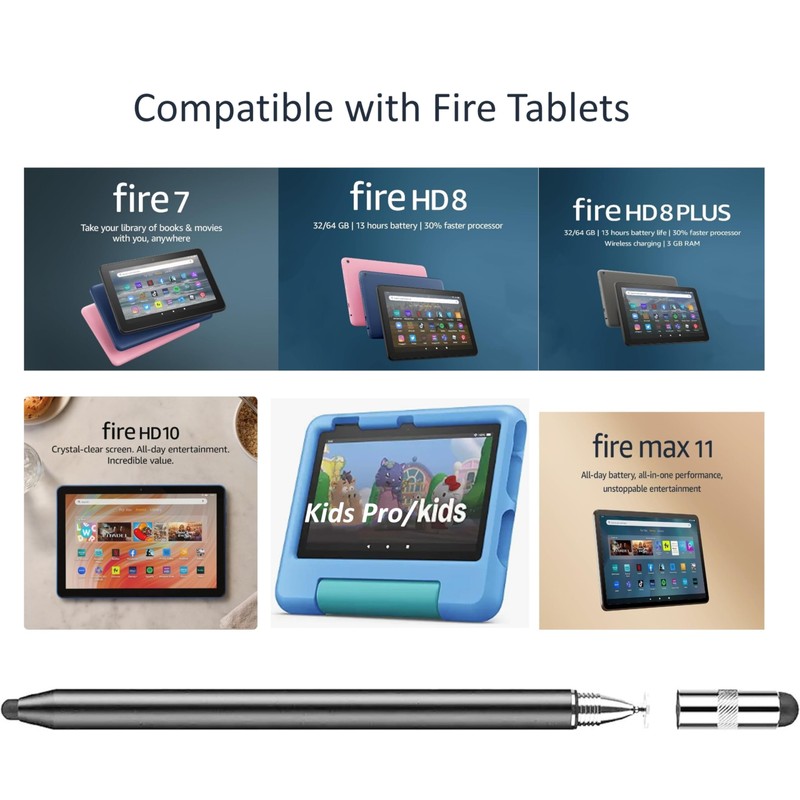- Stylus Pen Compatible with Fire Tablet All Versions, pen for Fire Max 11/Fire HD 10/Fire 10 Kids/Fire HD 10 Kids Pro/HD 10 Plus/HD 8/ HD 8 Plus/HD 8 Kids/HD 8 Kids Pro/Fire 7/Fire 7 Kids/Fire Max 11/Fire Max 11 Tablet
