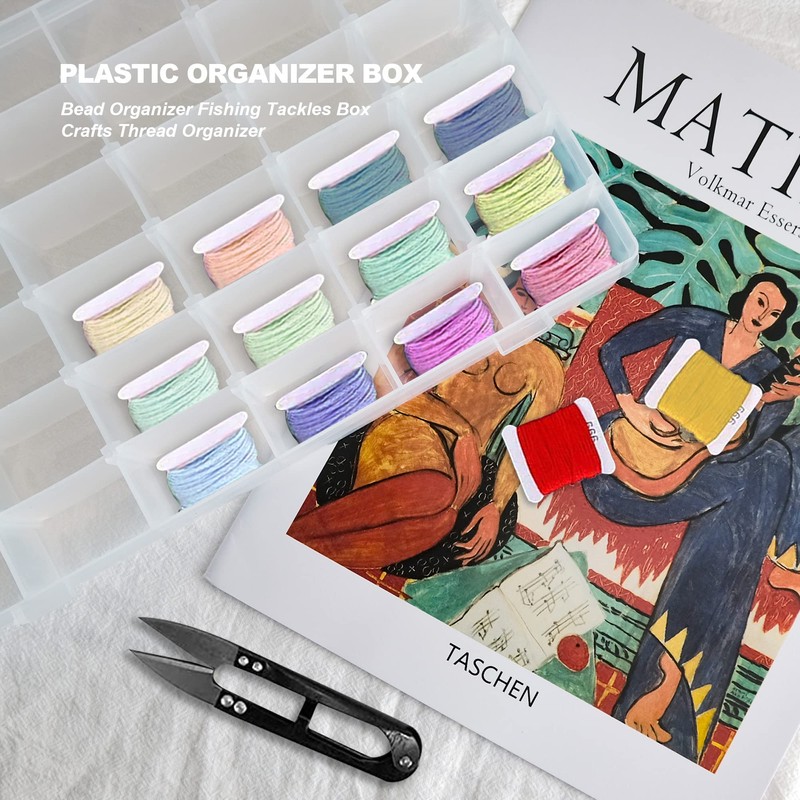 • PACKAGE INCLUDE:2 x 36 Grids Embroidery Floss Cross Stitch Organizer Box ; 8 x Blank Stickers;200 x Plastic Floss Bobbin