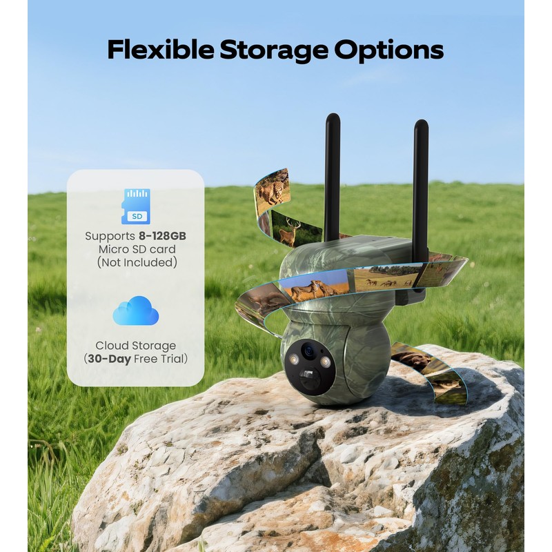 This camera has a built-in 4G SIM card that provides stable image and data transmission to the camera, so you never have to worry about not being able to view your camera due to signal issues.