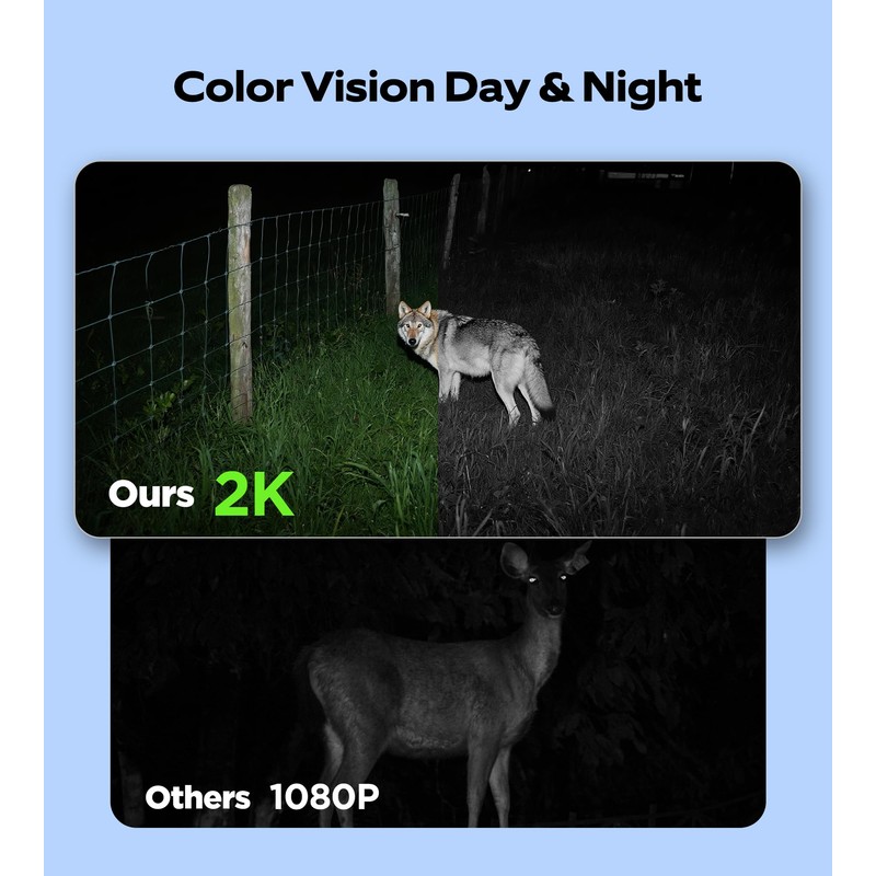 The camera is equipped with a combination of white and infrared LEDs, which can be freely switched between color and infrared modes at night. The camera captures HD footage of any unusual movement events it monitors in the field and sends you timely alert reminders. Never miss any wonderful moments or animal visits in the wild.