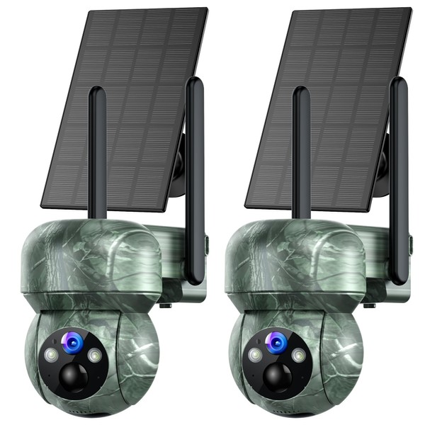 2Pack 4G LTE Cellular Trail Camera Solar: 2K Game Cameras Built-in SIM Card Hunting Cameras Wireless Battery with PTZ 360° Live View & Playback Color Night Vision Motion Activated IP66 for Wildlife