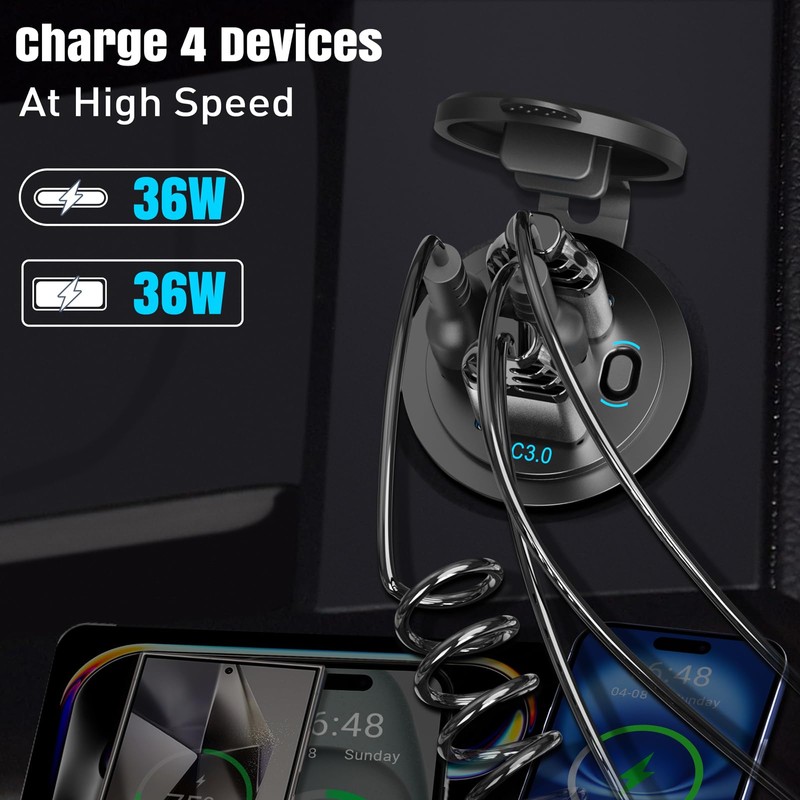 - 【Charge All Devices Simultaneously】This USB 12v socket has a longer design, which allows it to be equipped with smart chips in all 4 ports. The car USB port can charge quickly at the same time without affecting each other. The total power of the 12V USB charger is up to 90W; whether you have 1, 2, 3, or 4 devices, the power will be intelligently allocated without sacrificing charging speed.