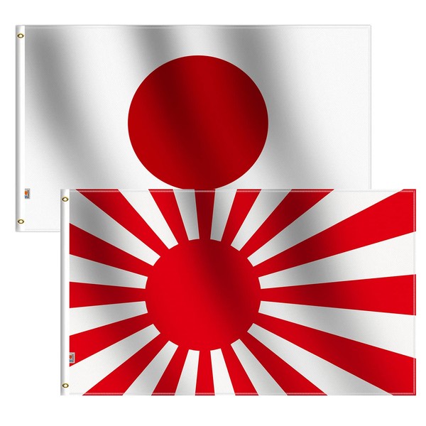 2Pack Battle WWI Japan Flag 3x5 Ft, Moderate-Outdoor 100D Polyester,Canvas Header and Double Stitched - 3' x 5' Japanese Rising Sun Flags