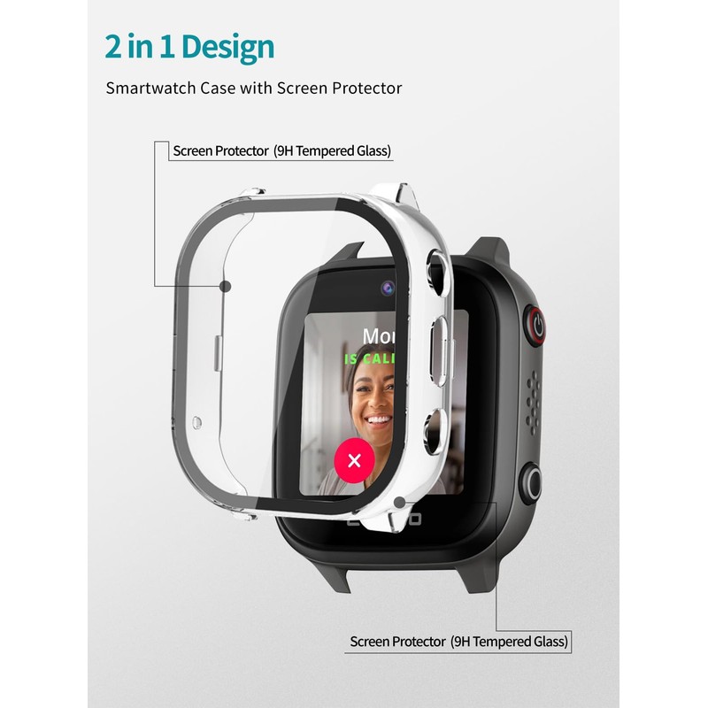 - 【2 In 1 Design】Integrated with hard PC shell and 9H hardness tempered glass screen protector.All Around protects your Smartwatch from scratch, bumps and accidental drops.