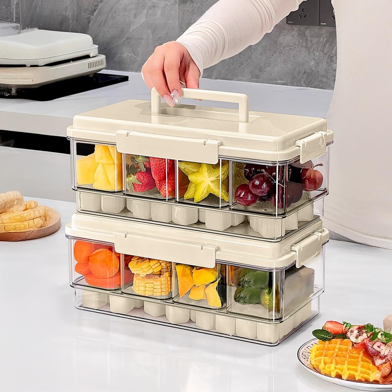 - Unique Design - Multiple buckle design, fully ensuring the freshness of vegetables and fruits.Portable handle design, easy to carry when going out.Transparent compartments can clearly see the type of food stored and freshness.After use, it can be conveniently rinsed off with water.