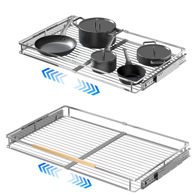 - ✔【High Quality Material】The pull out drawers for kitchen cabinets is made of stainless steel, which can directly contact tableware and food, and is very safe, waterproof and rust proof. Stainless steel metal pull out drawers for kitchen cabinets is more durable and more supportive than ABS plastic basket. Simple and low-key colors can match with cabinets of various styles, suitable for a variety of family styles.