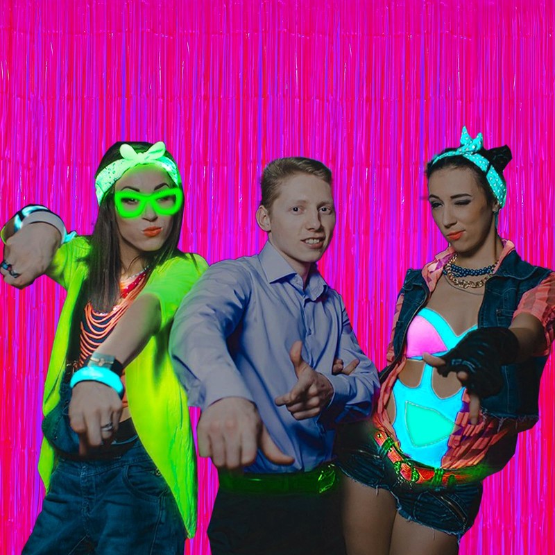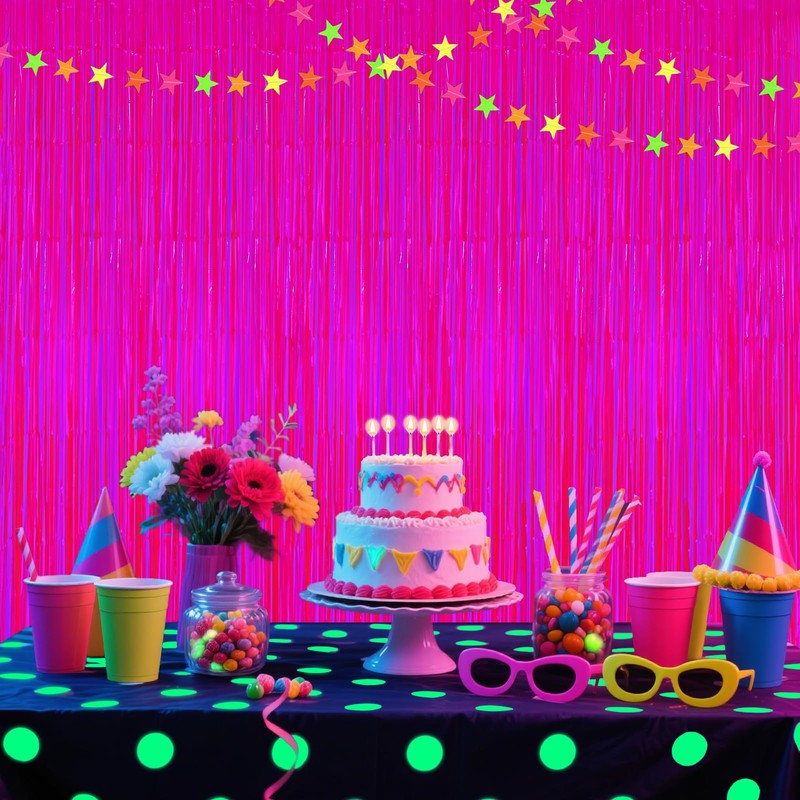 • 【 Premium Material 】:These Fluorescent Neon Macaron Fuchsia foil fringe curtains are made of tinsel 42μm thicken aluminum foil with shiny surface, They are lightweight and durable fringe curtains. flexible and gorgeous when used as a room divider, Brighter color reflection than standard tinsel curtains, achieving glow effects under UV/party lights without fading. window curtain wall decoration. Good for adding sparkle as decorations for parties. enjoy your glittering party