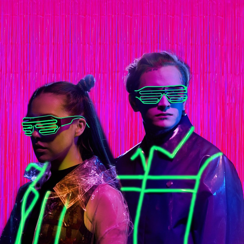 2Pack Glow in The Dark Foil Fringe Curtains, 6.6 x 6.6 ft Fluorescent Macaron...