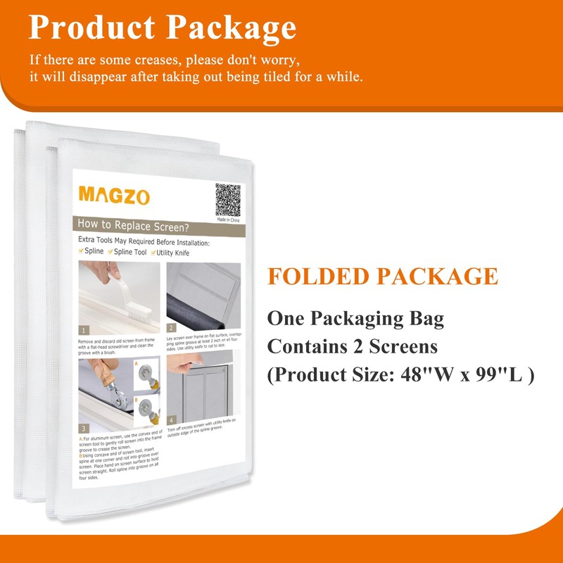 2PACK MAGZO Window Screen Door Replacement Mesh, 48" W x 99" L, Upgraded Polyester, Screens Screening Net Netting Curtain Wire for Camper/Sliding Glass/Patio/French/Balcony/Back Windows Doors, White