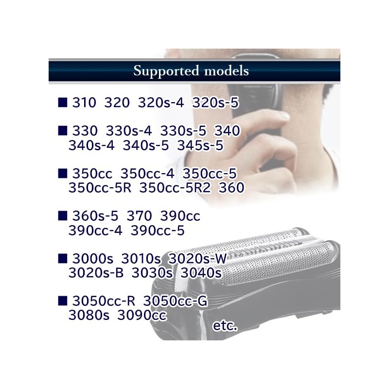 - 【Suitable for the following models】 Compatible with Series 3 shaver 300s, 301s, 310, 310s, 320, 320s-4, 320s-5, 330, 330s-4, 330s-5, 340, 340s-4, 340s-5, 345s-5, 350cc, 350cc-4, 350cc-5, 350cc-5R, 350cc-5R2, 360