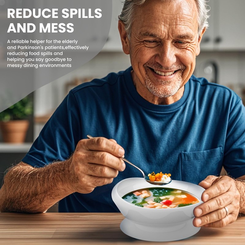 - 【Spill-Proof Aids for Daily Living】This scoop plate gadget features high edges, deep grooves, and a contoured lip to effectively prevent food from spilling. It allows Parkinson's patients, those with arm injuries, and stroke patients to eat independently with one hand, no longer struggling with tremors during meals. Suitable as a gift for seniors.