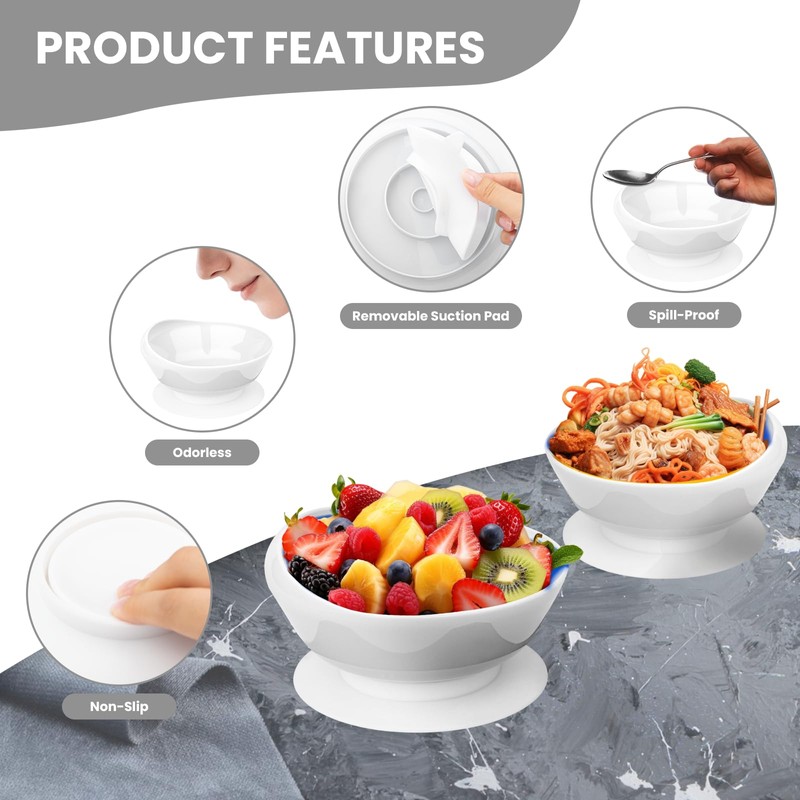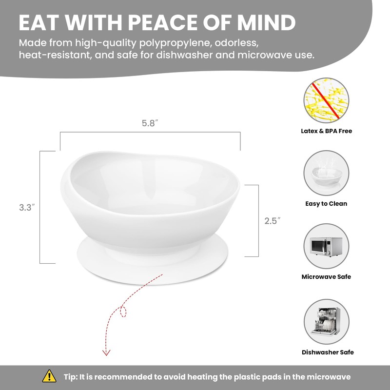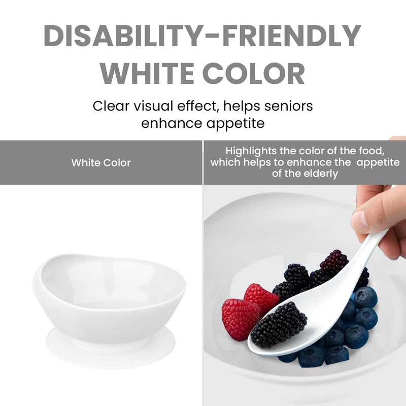 2Pack Spill Proof Scoop Bowl with Non-Skid Suction Base, Adaptive Self-Feeding Dinnerware for Elderly and Disabled(White)