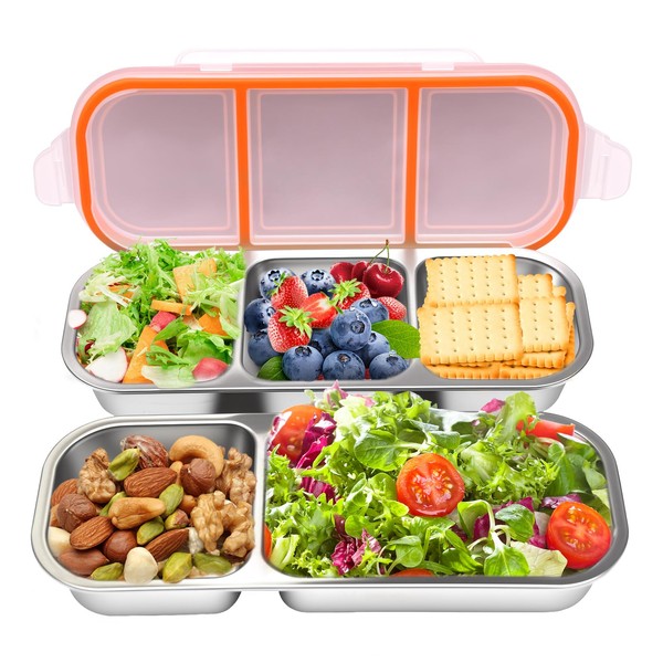 • Leak proof sealing design:stainless steel meal prep containers The specially designed leak-proof lid (with sealed silicone rings and 6 tight buckles on the cover) ensures that your snacks won’t spill when tilted or shaken,each compartment locks in freshness,It allows you to enjoy the original taste and freshness every time, making it perfect for ready to eat snack containers