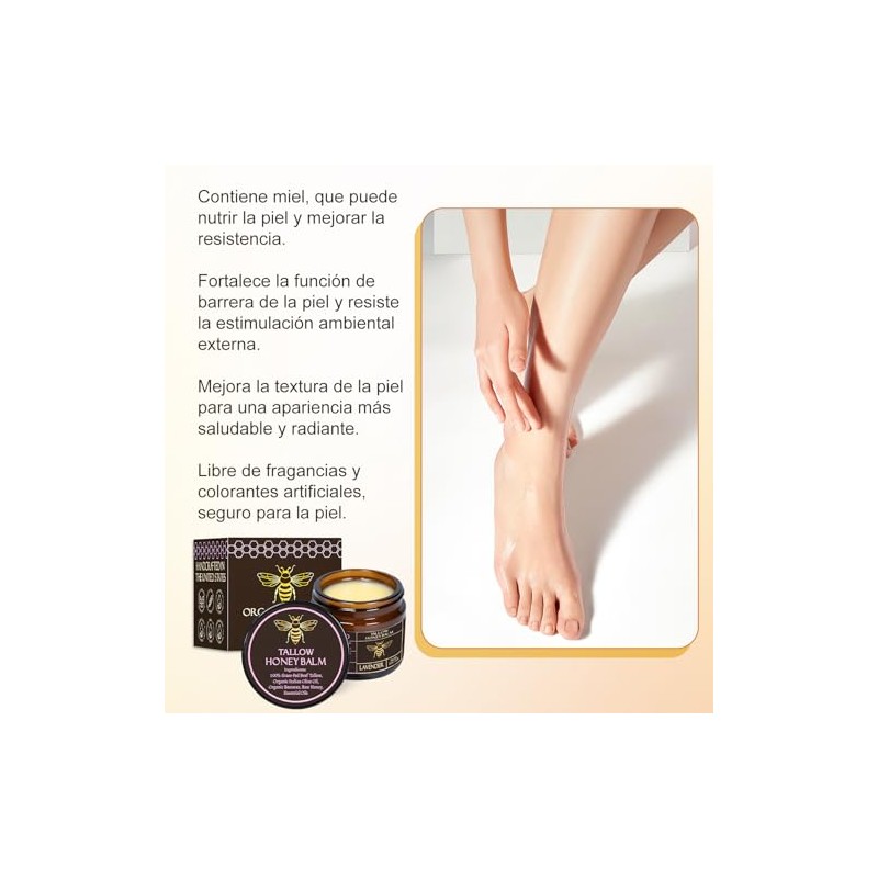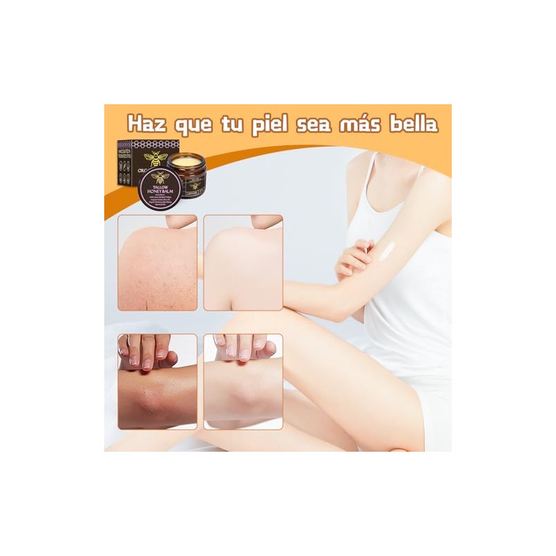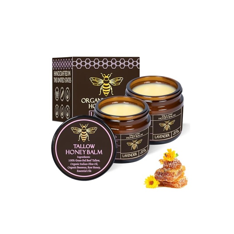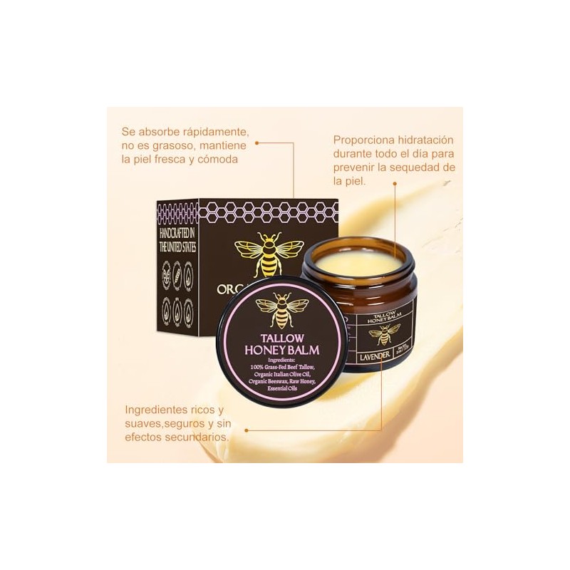 2PC Bálsamo de sebo de res alimentado con pasto orgánico con miel cruda Crema humectante para una piel suave y tersa Handm