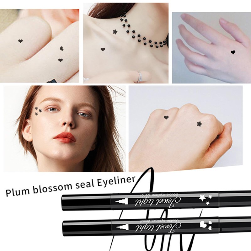 2PC Black Eye Pens with Motif Stamp and Eyeliner, Waterproof Eyeliner, Klare Linienführung, Lange Haltbarkeit, Leicht aufzutragen, Wischfest, for Eye Makeup for a Perfect Eye Wing