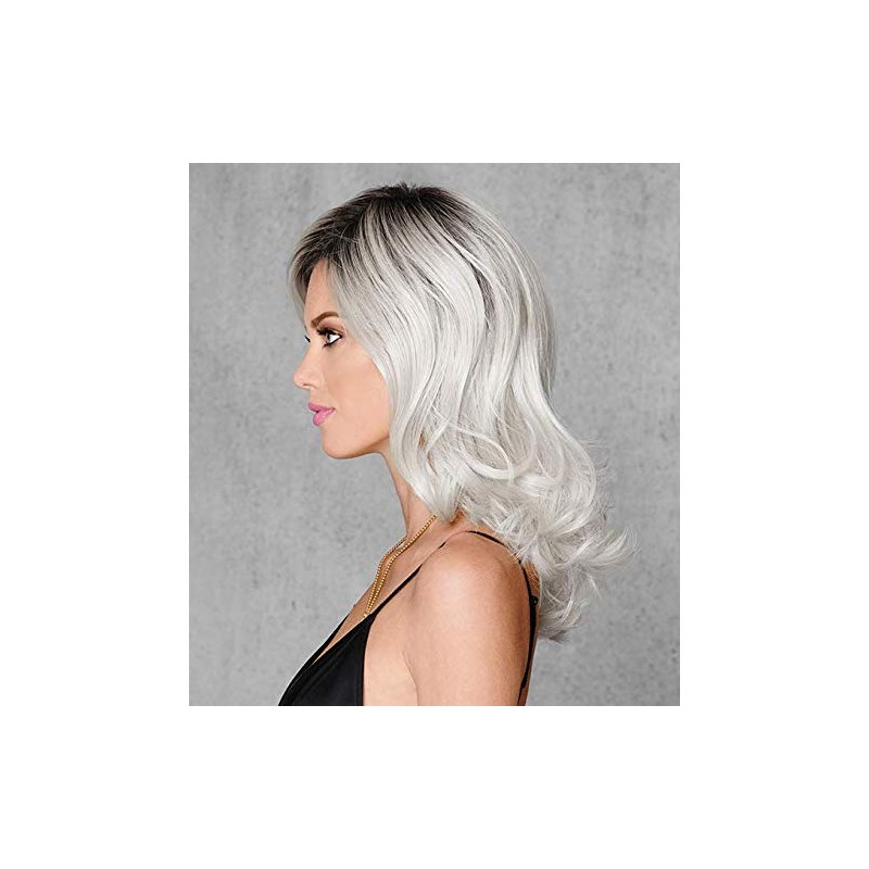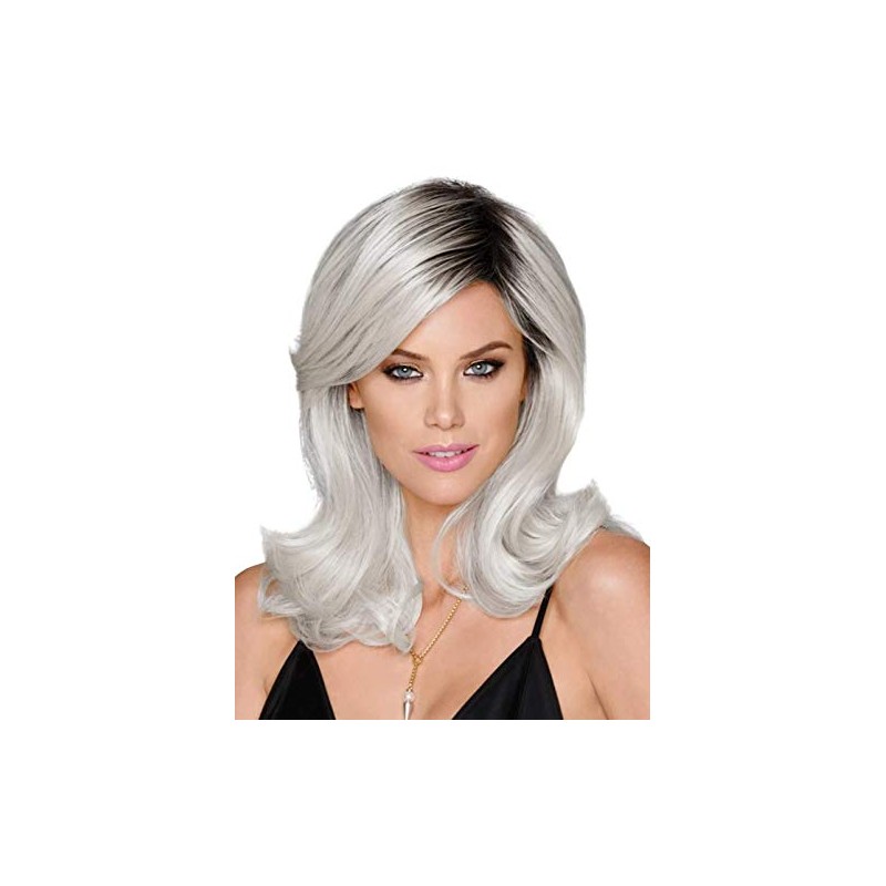 - Wow in this wickedly white wig. The classic mid-length hairstyle is updated and made edgy with a silver white base and darker roots. Add your personal style to this cut by styling it curly or straight. The open wefted cap keeps you comfortable while you rock these locks