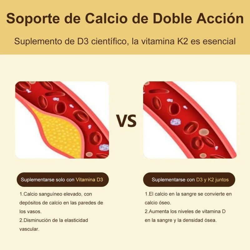 Fortalece tus huesos 🦴, protege tu corazón ❤️ y mejora tu inmunidad 🛡️. ¡2 en 1, alta potencia!
