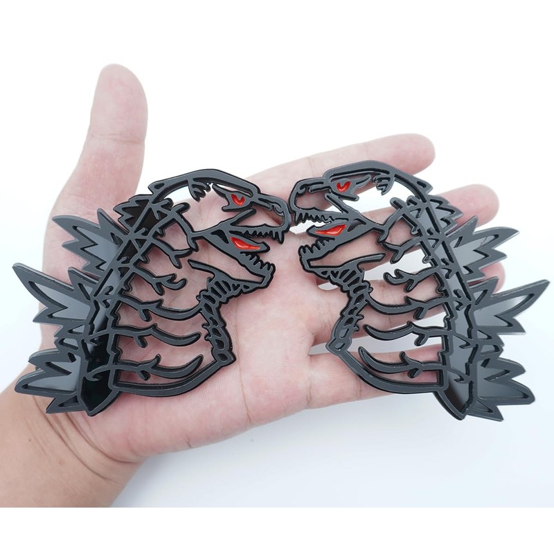 2Pc Godzilla Red Eye Badge 3D Emblem’s Custom Sticker Nameplate Replacement for Universal Car Body Motorcycle SUV Door Window Decoration (Black Red)