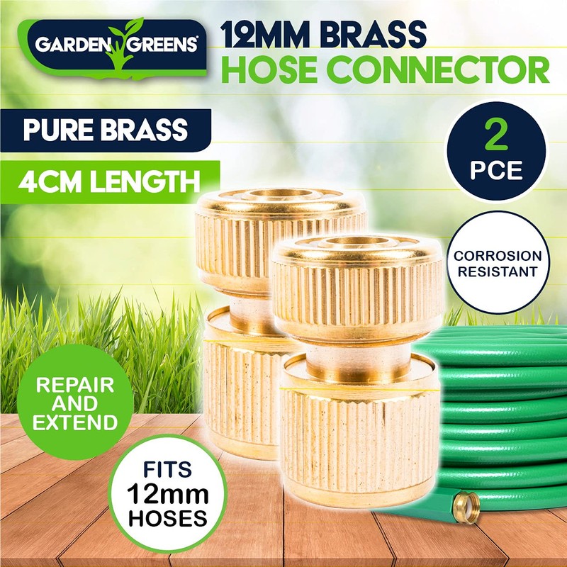 [2PCE] Garden Greens Brass Hose Connector, Durable and Leak-Proof Attachment for Hassle-Free Watering, Compatible with Standard Hoses